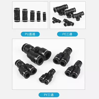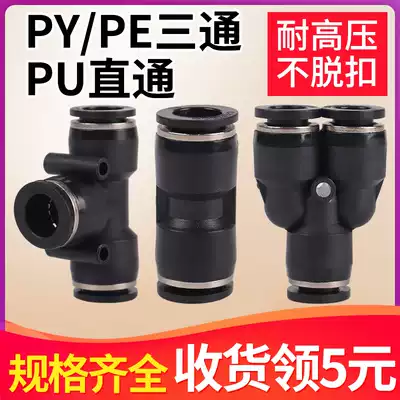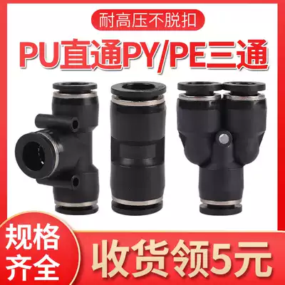 PU pneumatic straight-through quick connector Trachea quick plug PE three-way PY cylinder high pressure pipe air pressure pipe T-shaped butt head