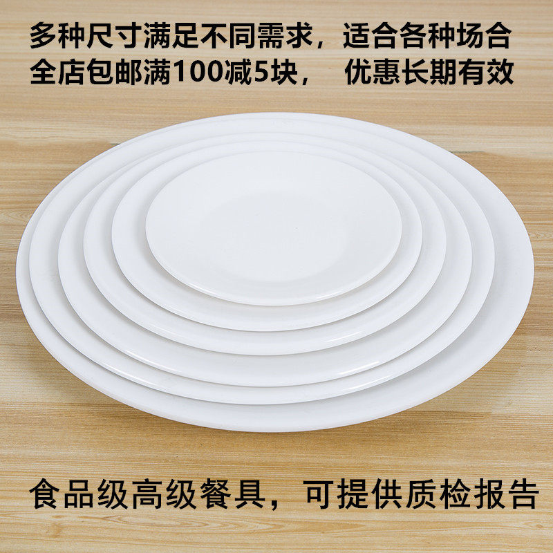 A5 melamine plate Round white melamine tableware Plastic cold dish plate Flat plate Fast food restaurant plate Commercial