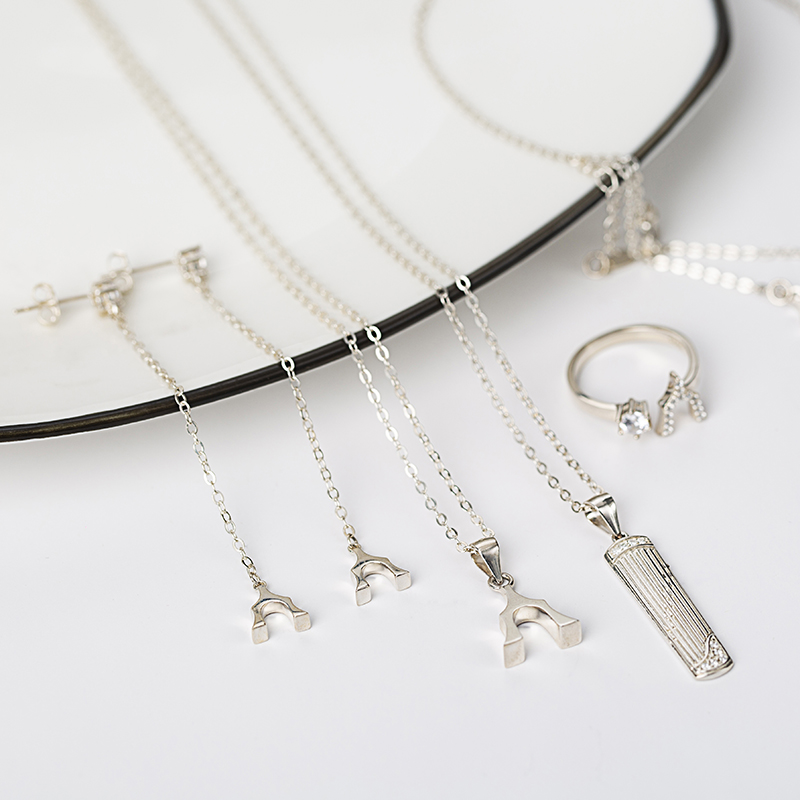 Bo Yin sterling silver zither jewelry Piano code Zither code necklace Ring ear chain pendant Hand chain Clavicle chain Zither decoration