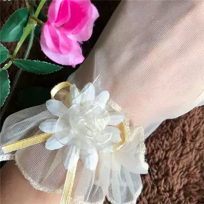New Korean wedding bride champagne colored gloves short mesh ruffle flower wedding photo modeling gloves
