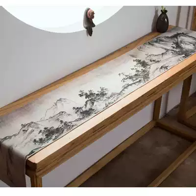 Cotton linen tea mat Chinese style Qianli Jiangshan Tu Ruihe Tu Zen Chinese table flag Lanting preface tea ceremony mat