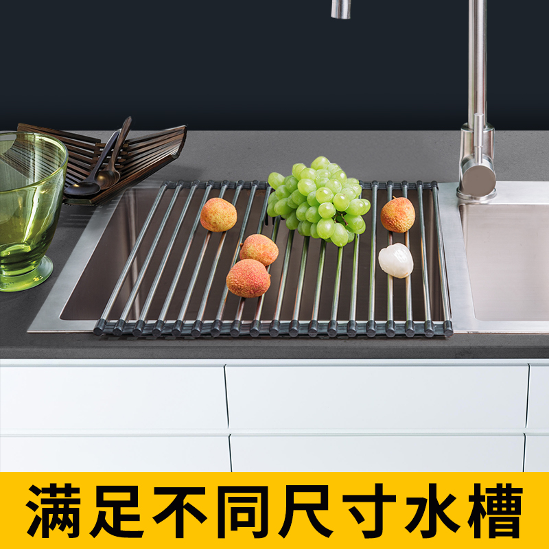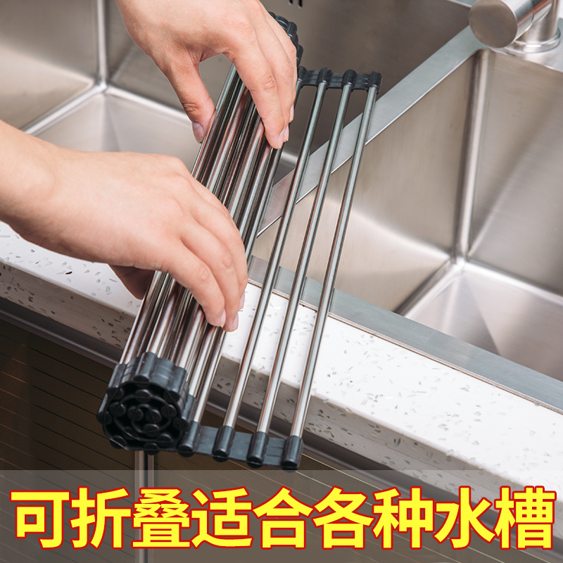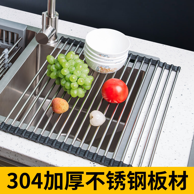 Sink drain rack 304 stainless steel drain basket Kitchen washing basket drain bowl rack Water filter net roll blue shelf