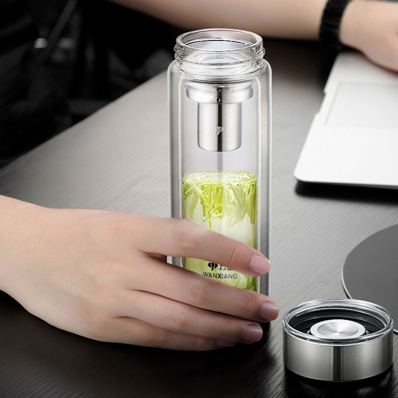 Vientiane double layer men's heat resistant glass cup office water glass home casual tea water cup with vehicle straight body mug