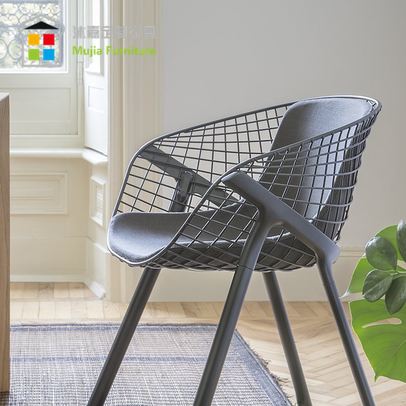 Designer custom Nordic style small apartment dining chair outdoor indoor leisure iron mesh chair metal negotiation chair