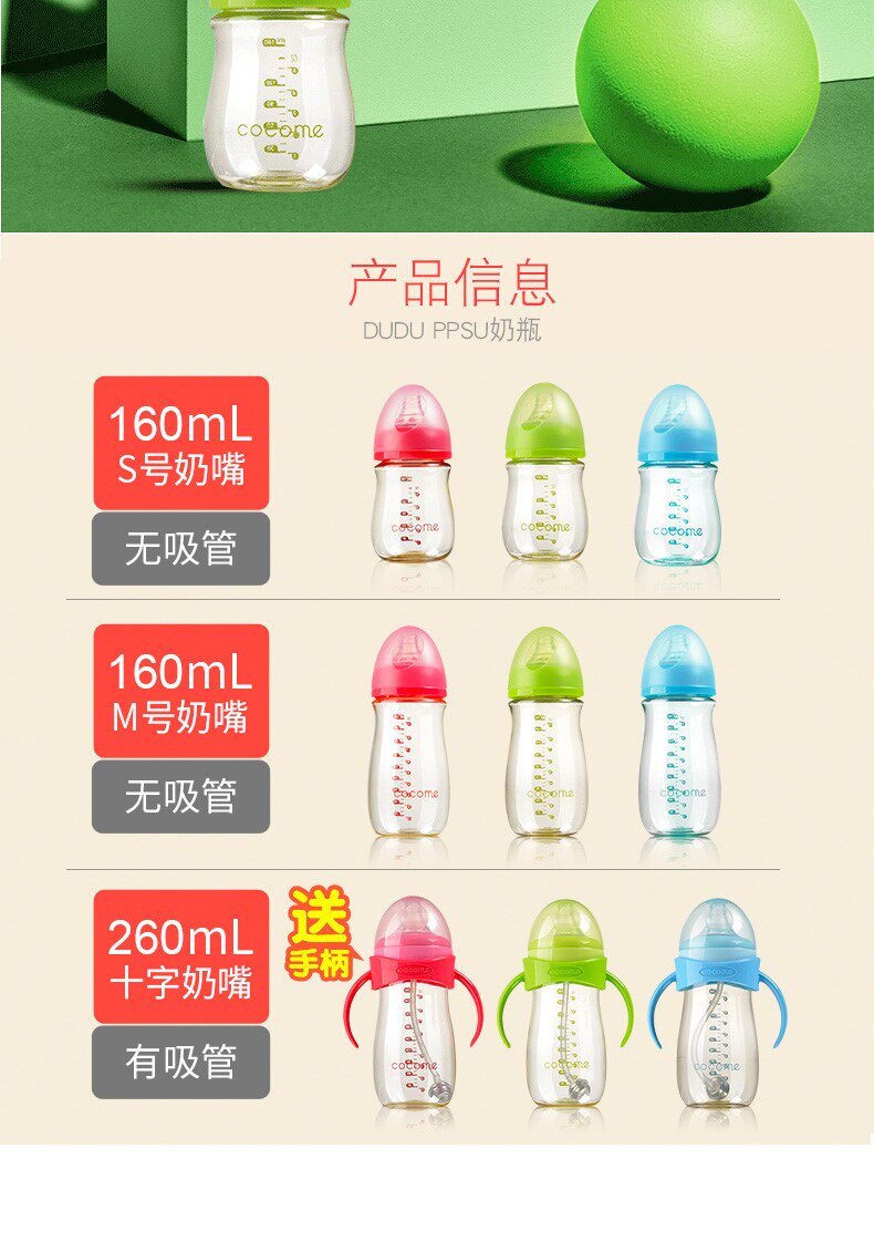 Can be cute Doodle PPSU baby bottle anti-drop soft pacifier 260mL to send nipple suction tube brush for more than 12 months