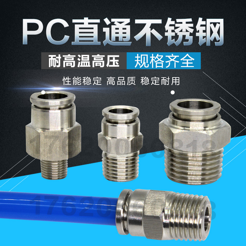 Pneumatic 304 stainless steel thread straight through quick insertion pipe connector PC8-02 10-03 high temperature resistant high-pressure gas nozzle