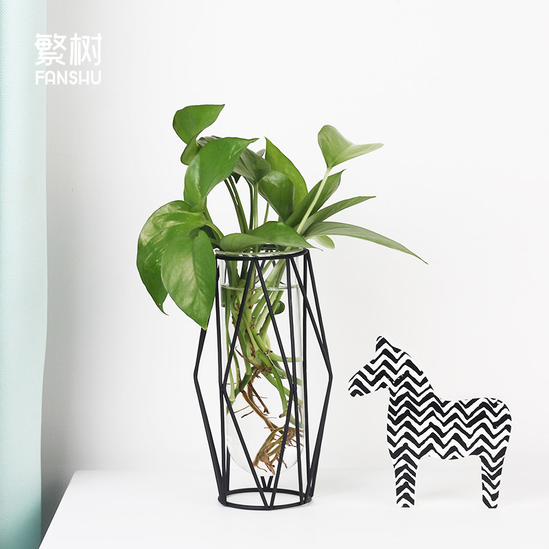 Nordic style ins creative desktop hydroponic green radish flower arrangement dry flower glass vase rhombus hydroponic plant flower pot