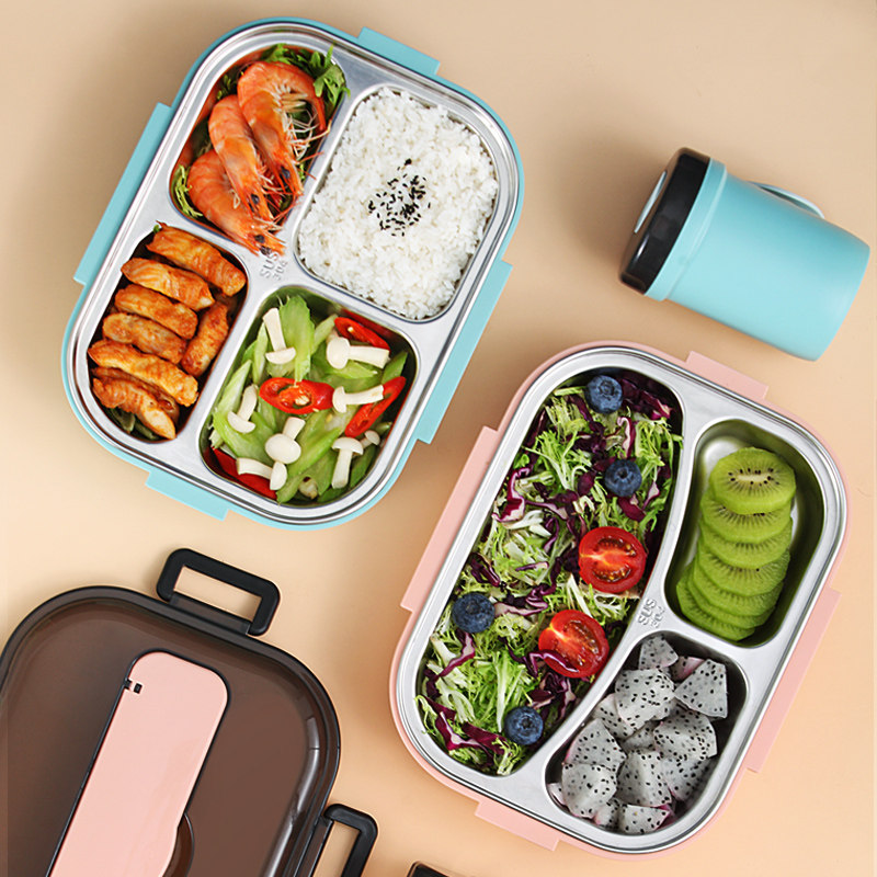 304 stainless steel insulated lunch box Office worker lunch box Portable 1 person fat reduction lunch box Divided grid type fitness lunch box