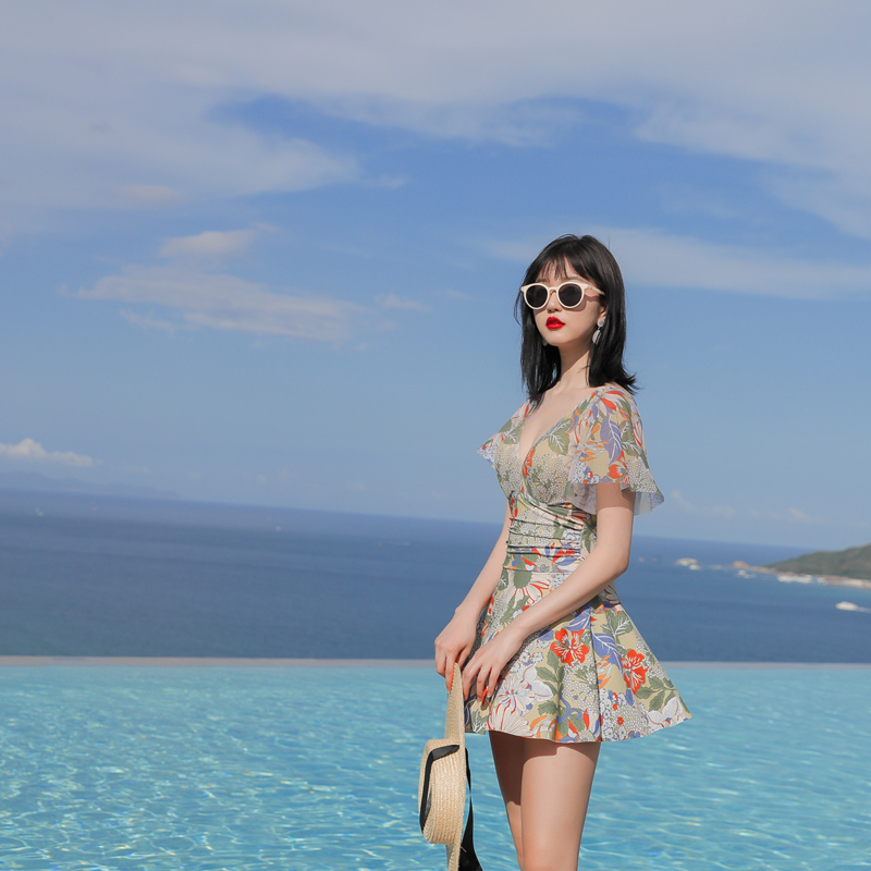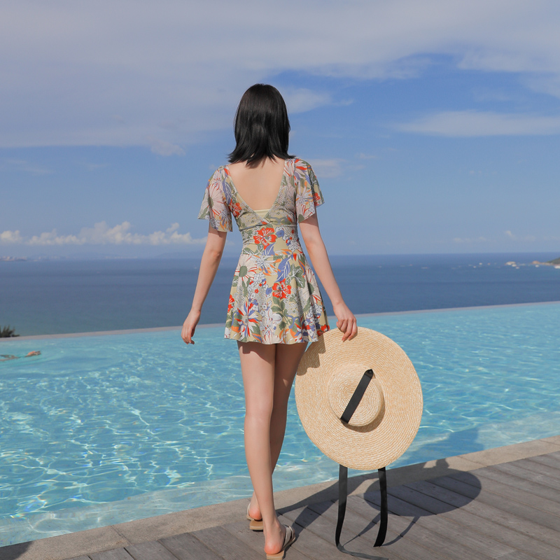 Conservative dress with flat angle ins and wind swimsuit steel to gather small breasts for a slimmer and slim cover swimsuit woman