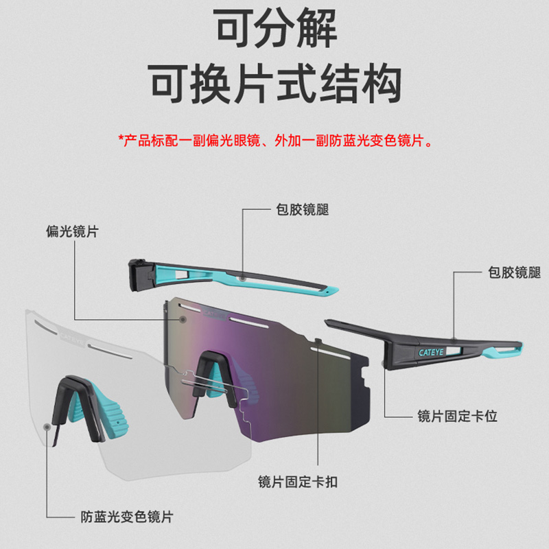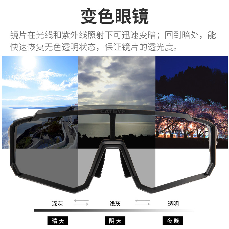 CATEYE Cat eye color-changing polarized road mountain bike riding glasses myopia frame windproof glasses Outdoor sunglasses