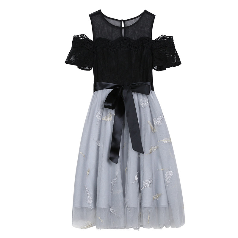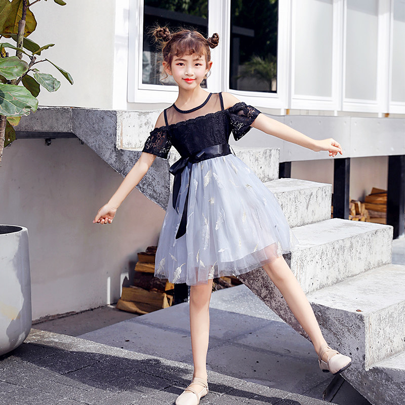 Mother-daughter dress summer and Korean version of the Western style tide mesh stitching princess skirt 2022 new girls off-shoulder skirt net red