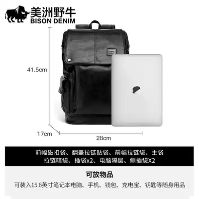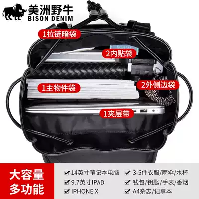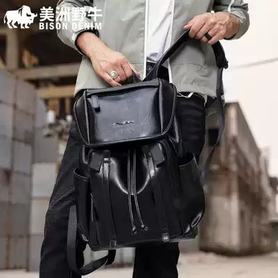 American bison backpack men's soft leather backpack large capacity travel travel bag Business computer bag Student school bag
