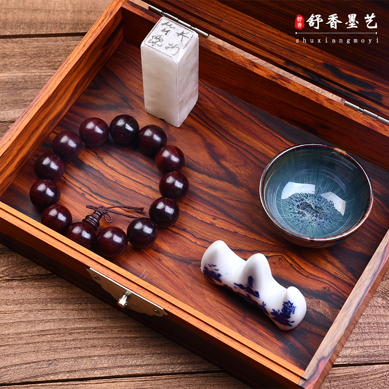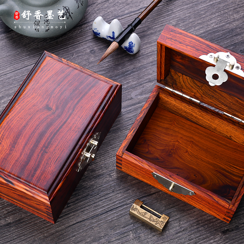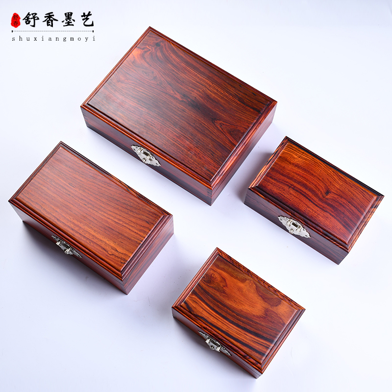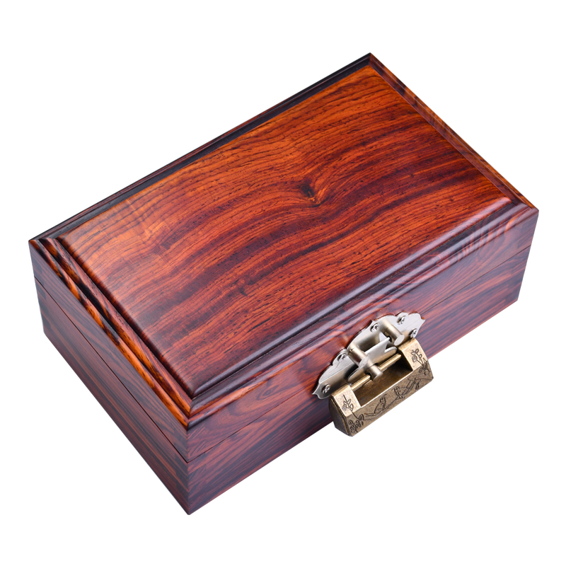 High-end Red Wood Collection Box Full Single Board Micro Recessed Yellow Sandalwood Box Send Retro Bronze Lock Solid Wood First Decorated Case Wood Small Case