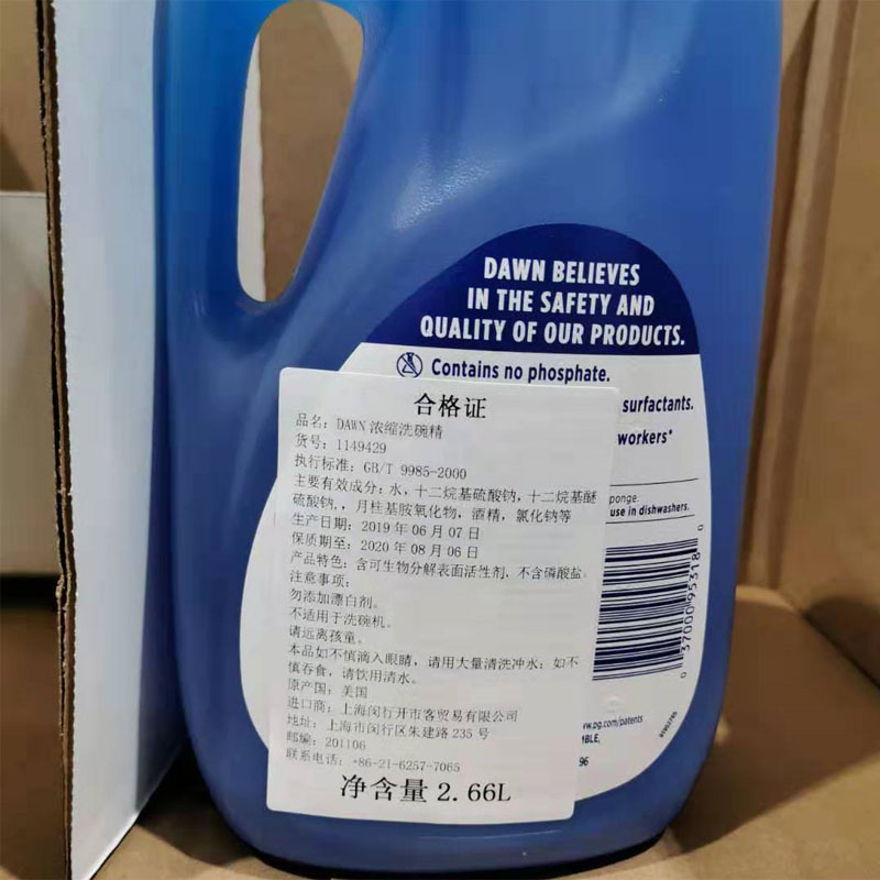 American import DAWN detergent DAWN brand concentrated detergent 2 66 liters dishwashing liquid washable pets