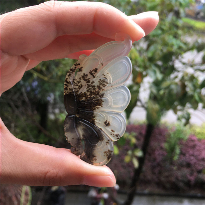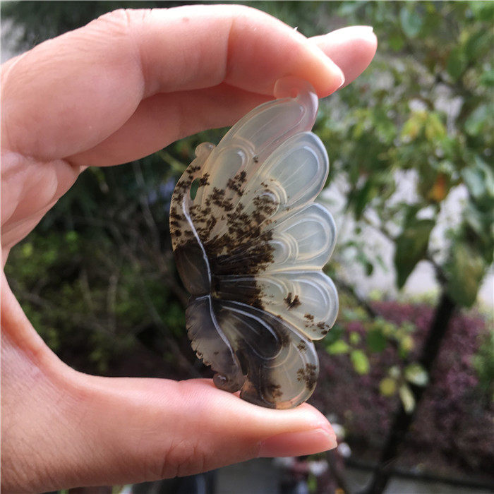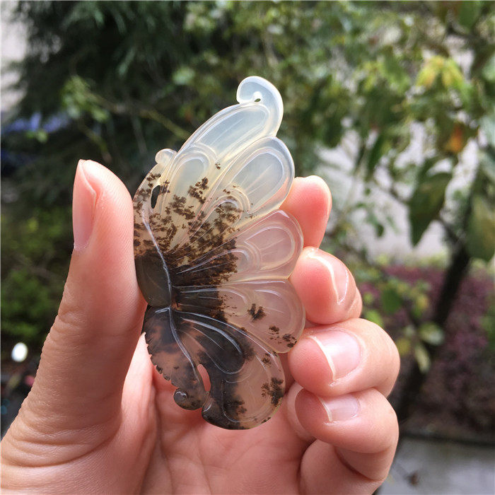 Natural jade yellow dragon jade water plant flower butterfly pendant pendant fashion women's neck jade