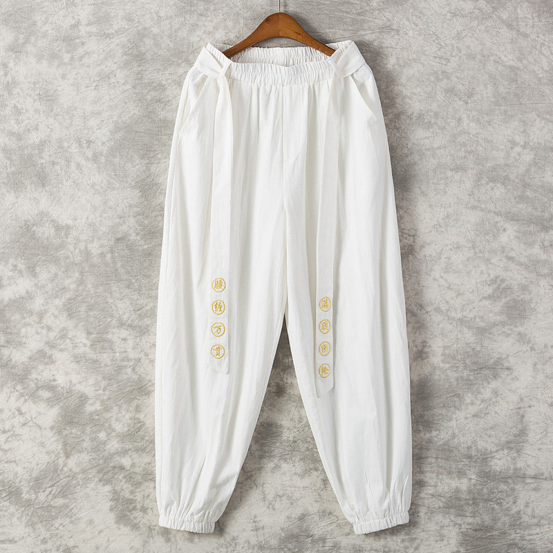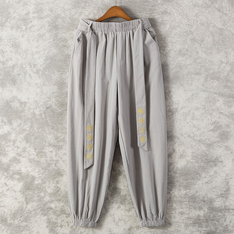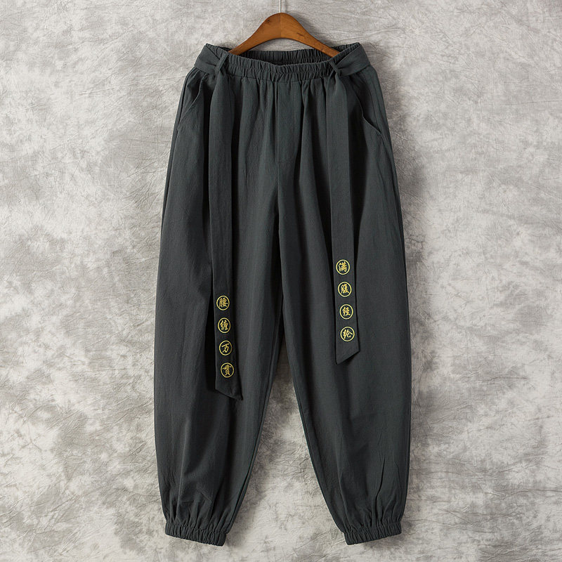 Chinese style casual pants men's loose bloomers small feet closed thick legs wide crotch ethnic style tight mouth harem pants