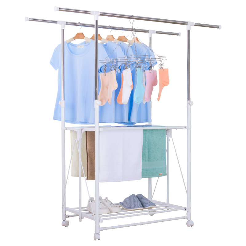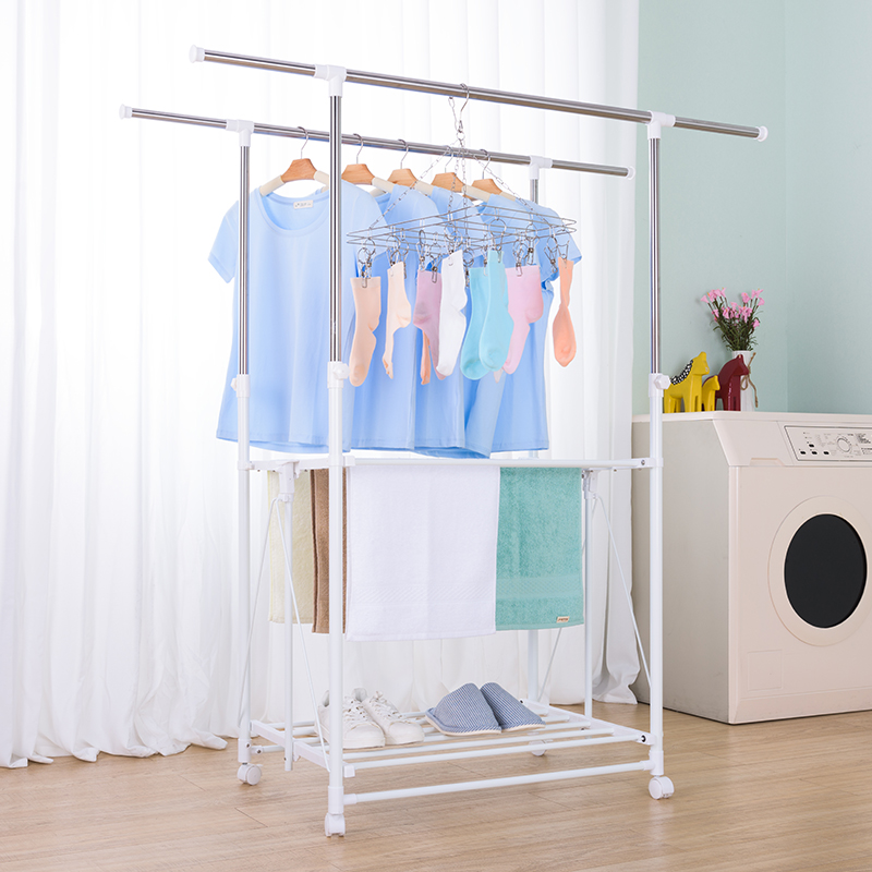 Double-lever folding-free installation of stainless steel floor indoor home clothes horse outdoor sunburn Hanging Clothes Towel Diaper Racks