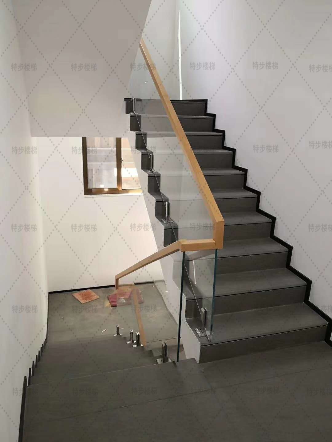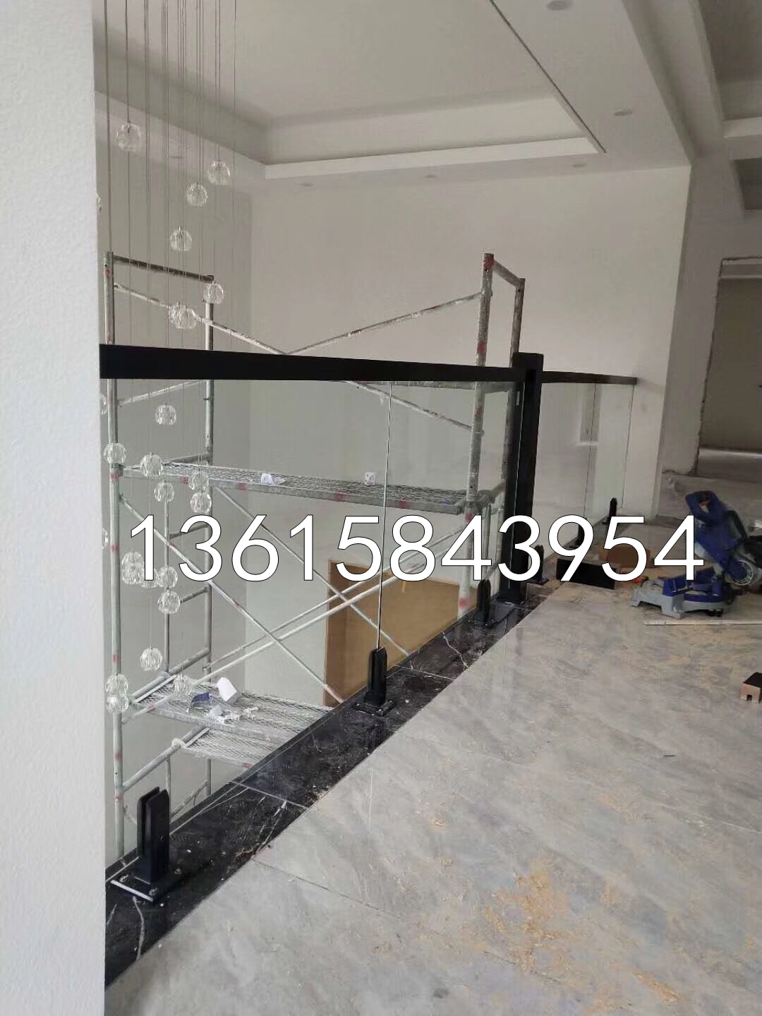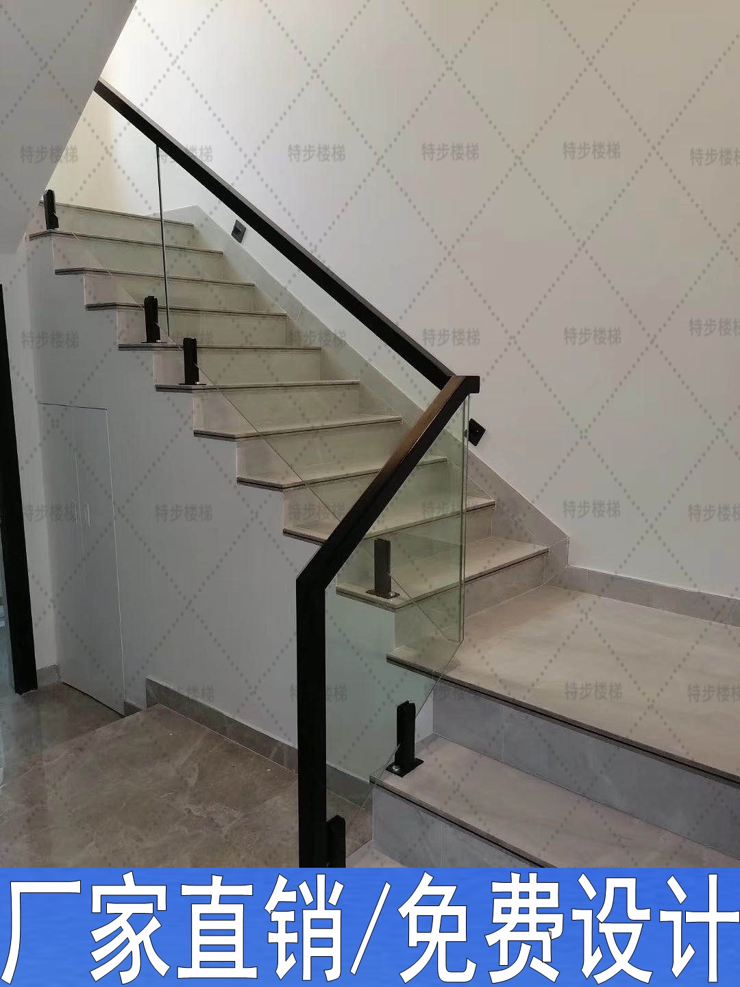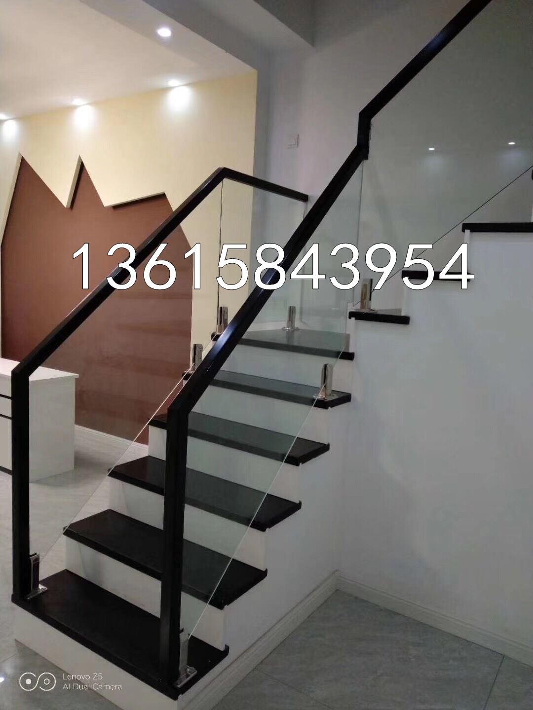 Indoor simple tempered glass stair handrail duplex stair fence solid wood paint handrail card glass railing