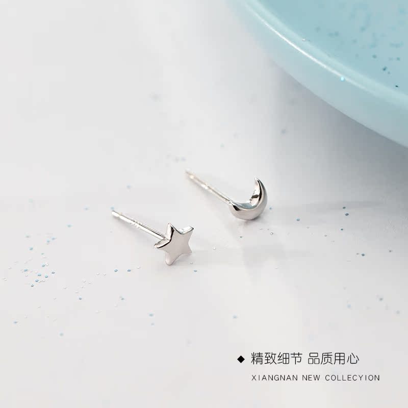 Alley South 925 Pure Silver Stars Moon Ear Pin Sleeping Without Picking Up Earrings 2021 New Summer Ear Accessories 2022