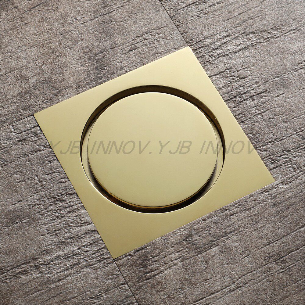 Home Hotel Guesthouse Full Copper Golden Bathroom Deodorant Large Displacement Chrome Floor Floor Drain Makeup Room Square Manufacturer Direct