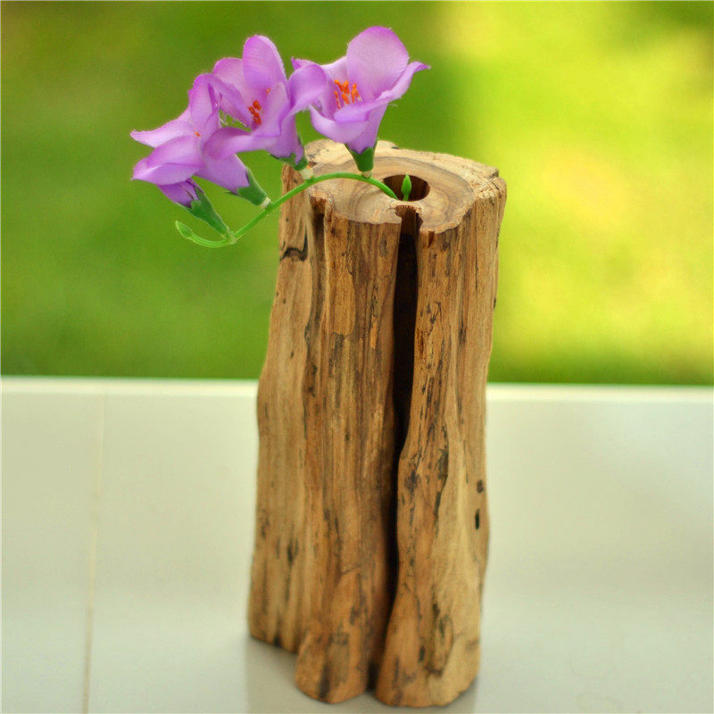 Thailand creative ornaments wooden vase living room flower arrangement dry flower irregular wood section wood pile punching solid wood decoration