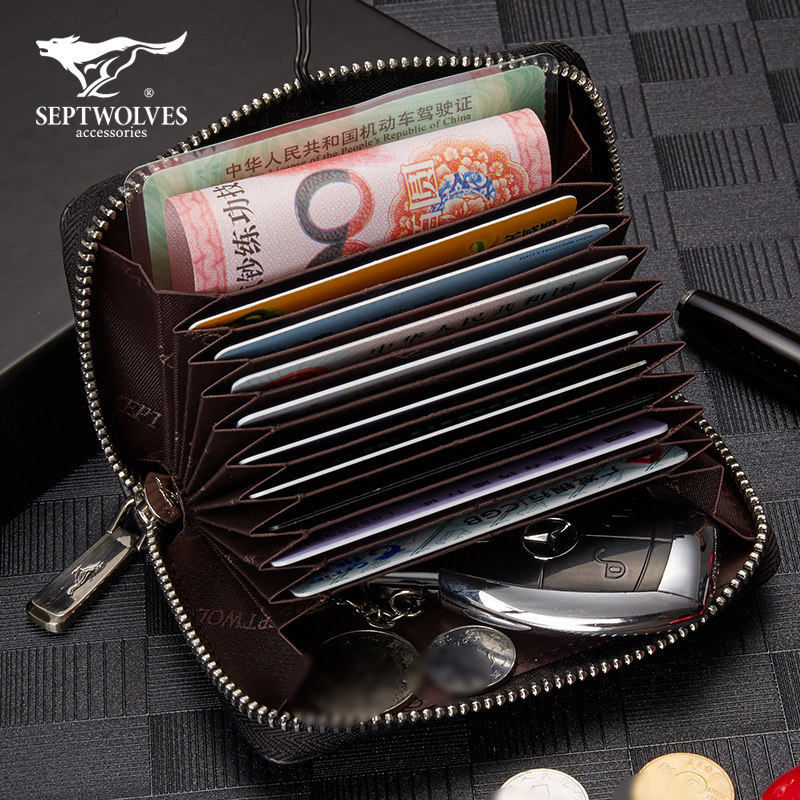 Septwolves anti-theft swipe multi-card position organ card bag men's leather large-capacity card bag women's credit card sleeve tide