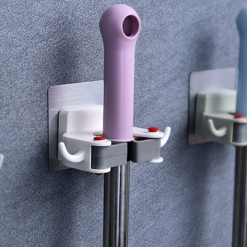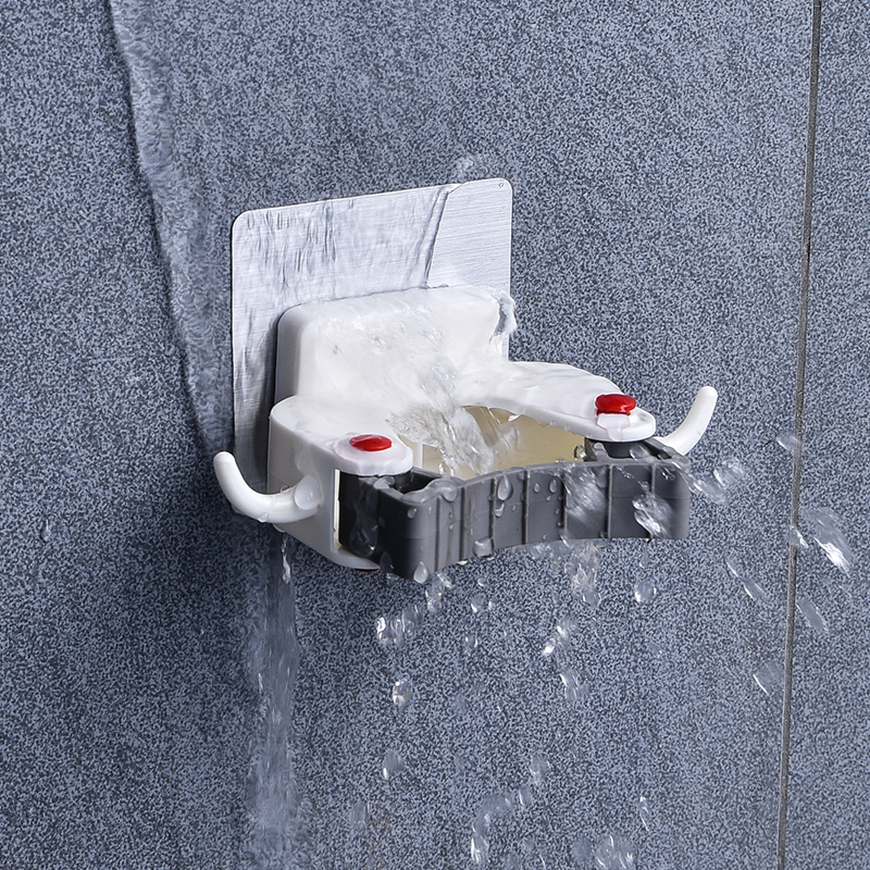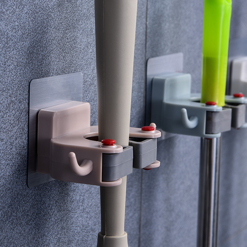 Mop rack Punch-free hook Wall-mounted broom rack hanging mop clip Powder room bathroom wall hanging rod strong sticky hook