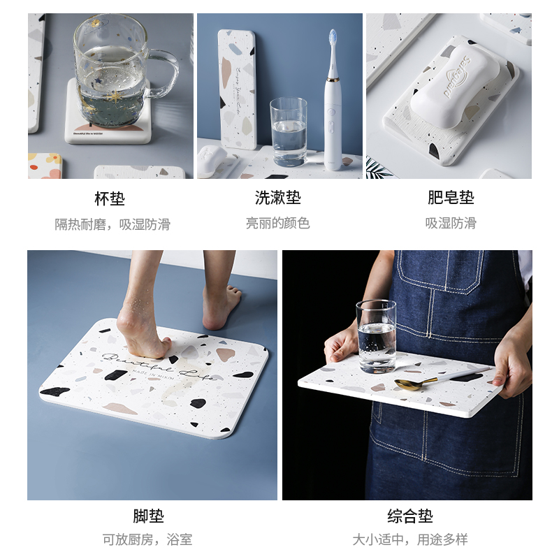 Terrazzo coaster Terrazzo soap pad Terrazzo wash pad Terrazzo comprehensive pad Terrazzo floor mat 45*35cm Terrazzo floor mat 60*39cm Small safflower cup