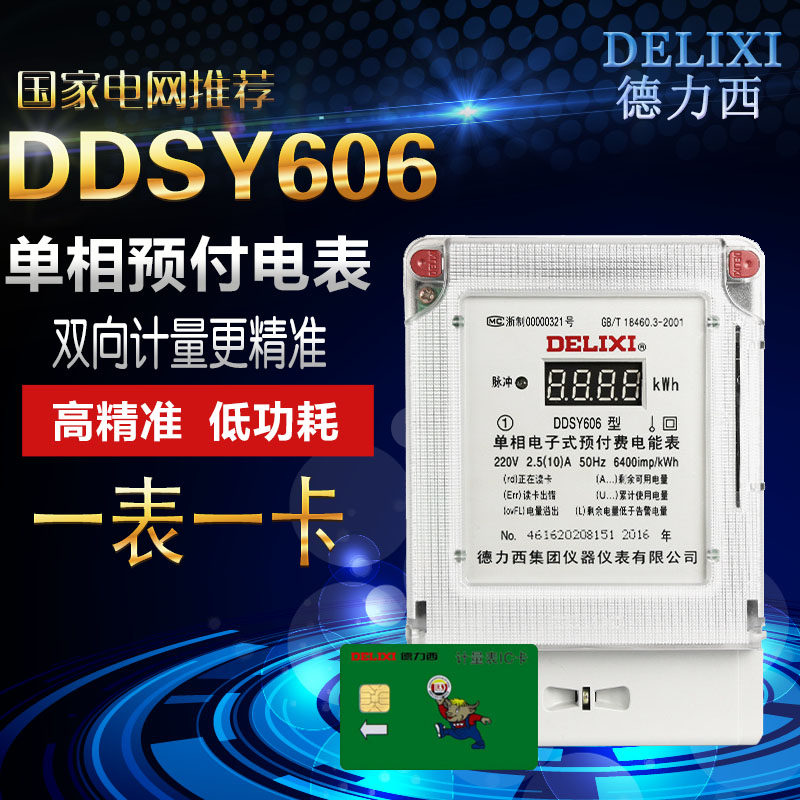 Delixi DDSY606 prepaid electricity meter smart electronic IC card electricity meter plug-in card household electricity meter 40A
