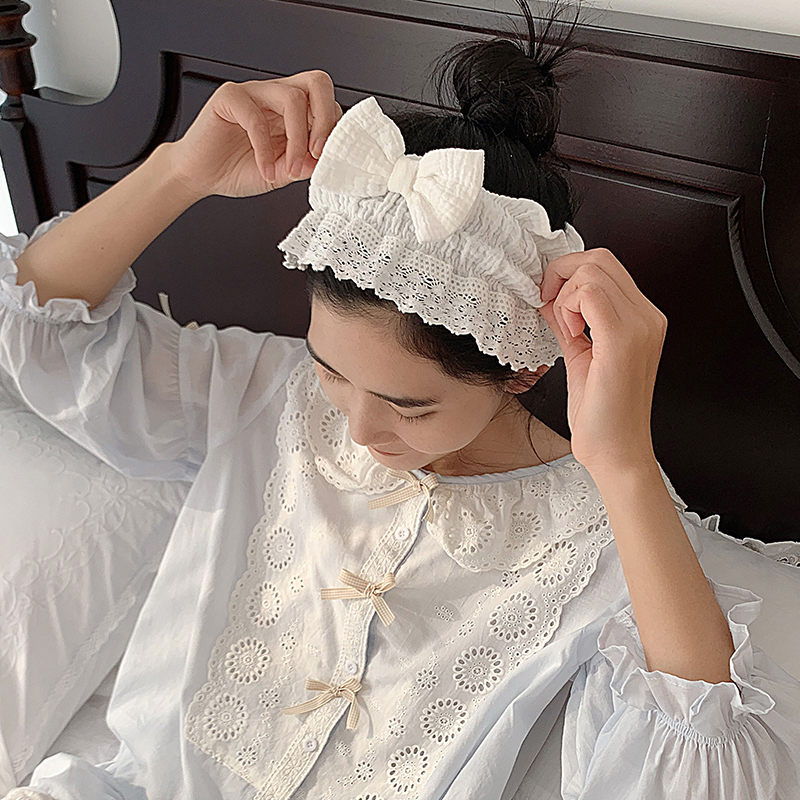 Pure cotton lace Korean version cute headband white ins princess headband wash faceband female net red simple headband