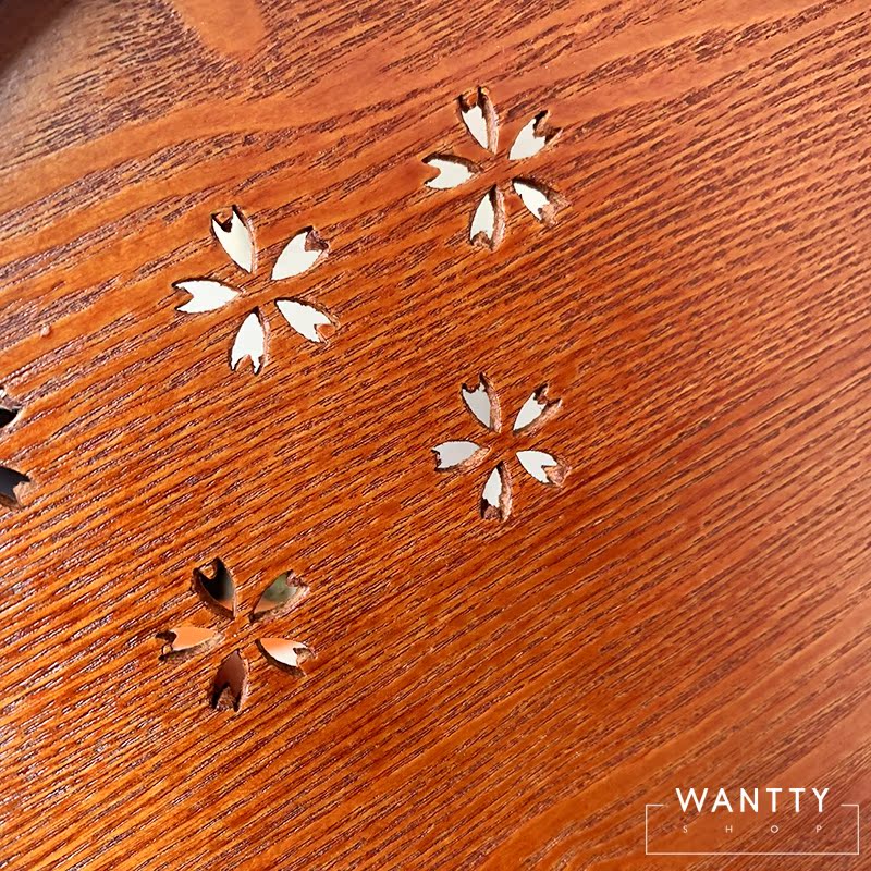 In stock Japanese-made Ruozhao pure wood lacquerware round tray Hollow cherry blossom tea tray Tea tray Fruit tray