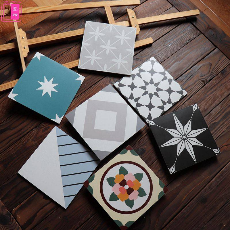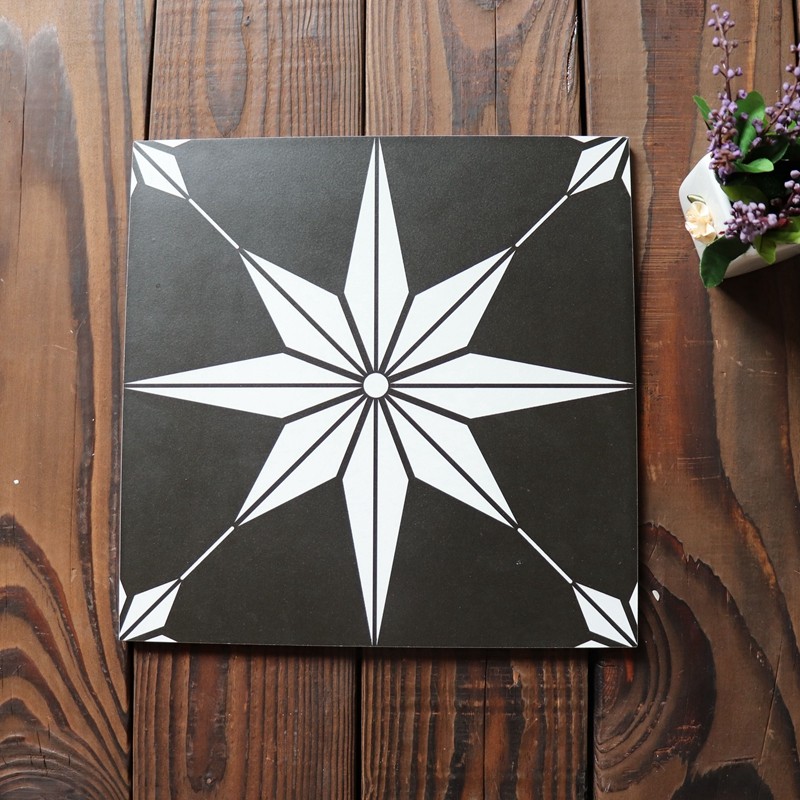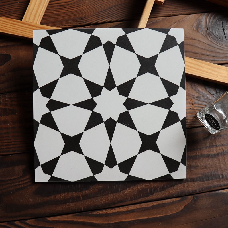Antique color puzzle brick 300x300 tile non-slip wear-resistant black and white gray tile powder room floor tile