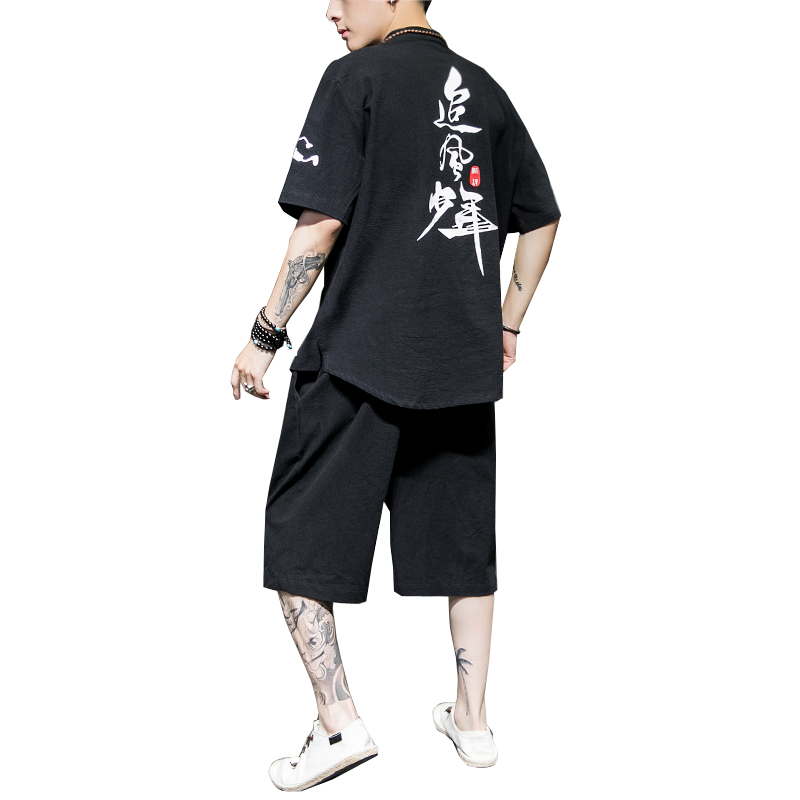 2019 Summer New China Wind Short Sleeve Suit Men Hanfu Ancient Wind Fairy Qi Retro Tide Card Youth Men's Dowboys