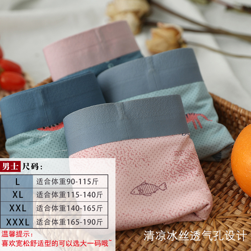 3 Dress Air Vents Mesh Cartoon Unscratched Men's Underwear Four-corner Pants Ice Silk Summer Thin men's four-corner shorts