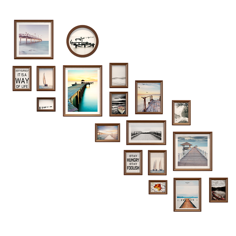 Staircase photo wall decoration wall creative wooden photo frame hanging wall combination wall free perforation corridor wall photo album