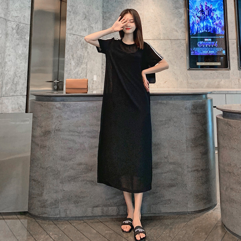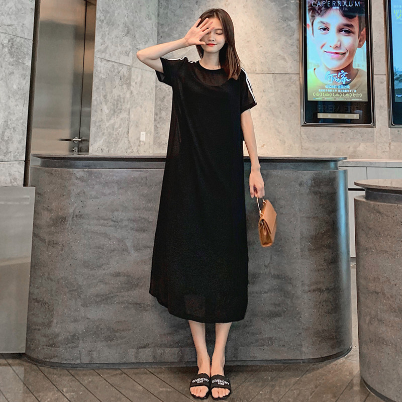 Pregnant women's summer dress long version over the knee Modale sling dress loose fashion size summer two-piece set