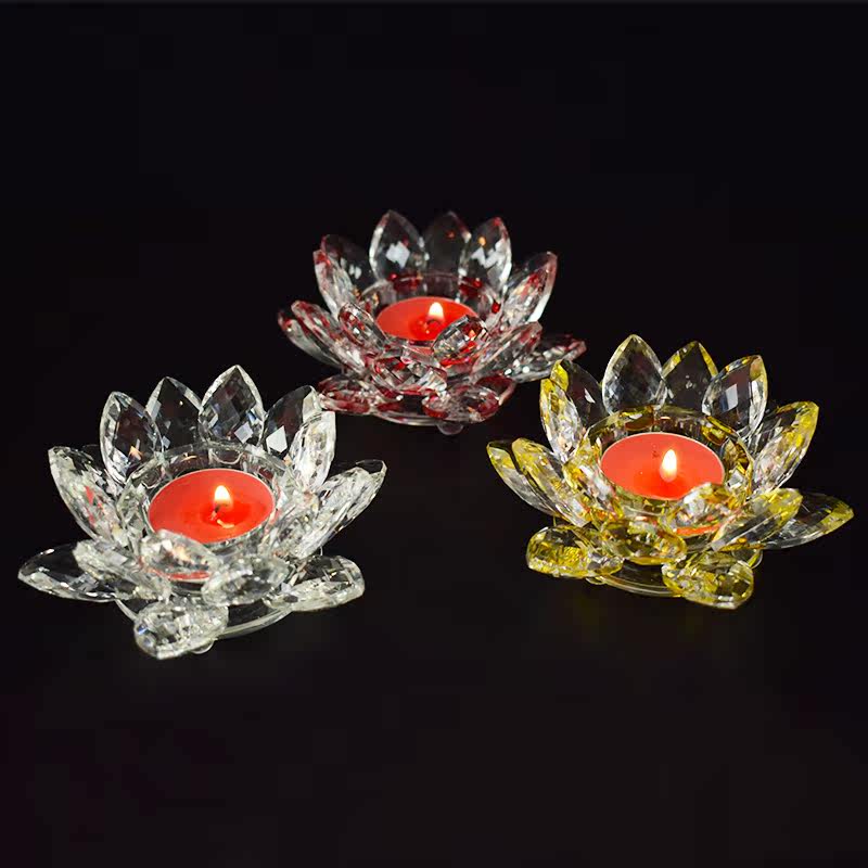 Buddhist Temple Supplies Home Buddha's Crisp Oil Lamp Holder Lotus High Foot Crystal Lamp Holder For Foe Candle Candle Holder