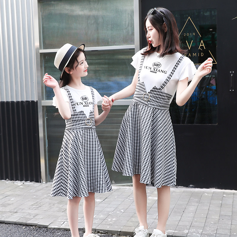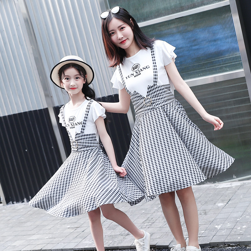 Pro-sub-dress 2022 Summer clothing new fake two pieces of baby bag plaid dress Girl dress Girls foreign dress Korean version of female dress