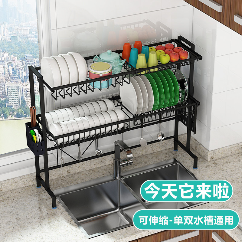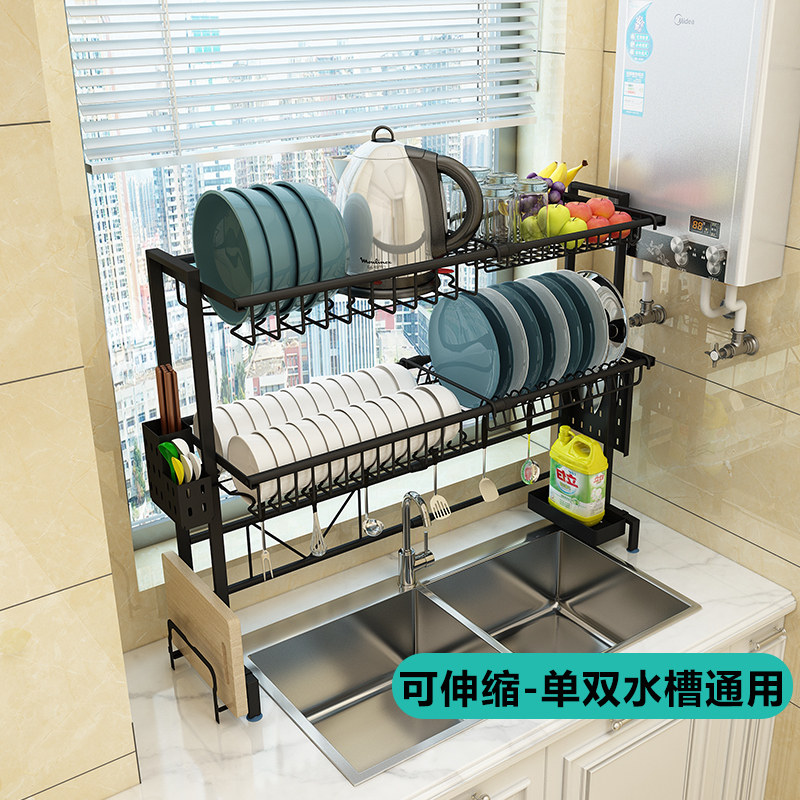 Single-layer black sink rack retractable 58-93cm(standard without pylons) Single-layer black sink rack retractable 58-93cm(with knife rack chopsticks spoon rack cutting board rack) Single-layer black sink rack retractable 58-93cm (with knife rack chopsticks spoon rack cutting board rack)