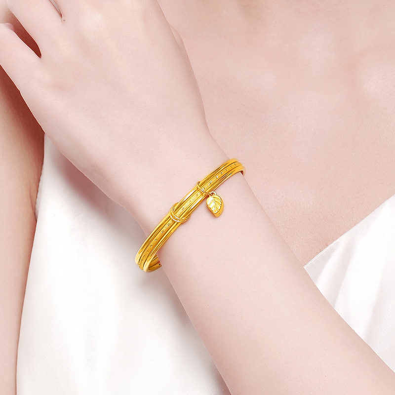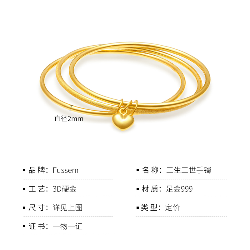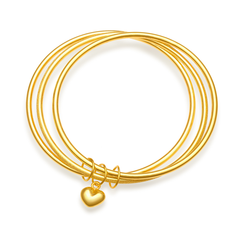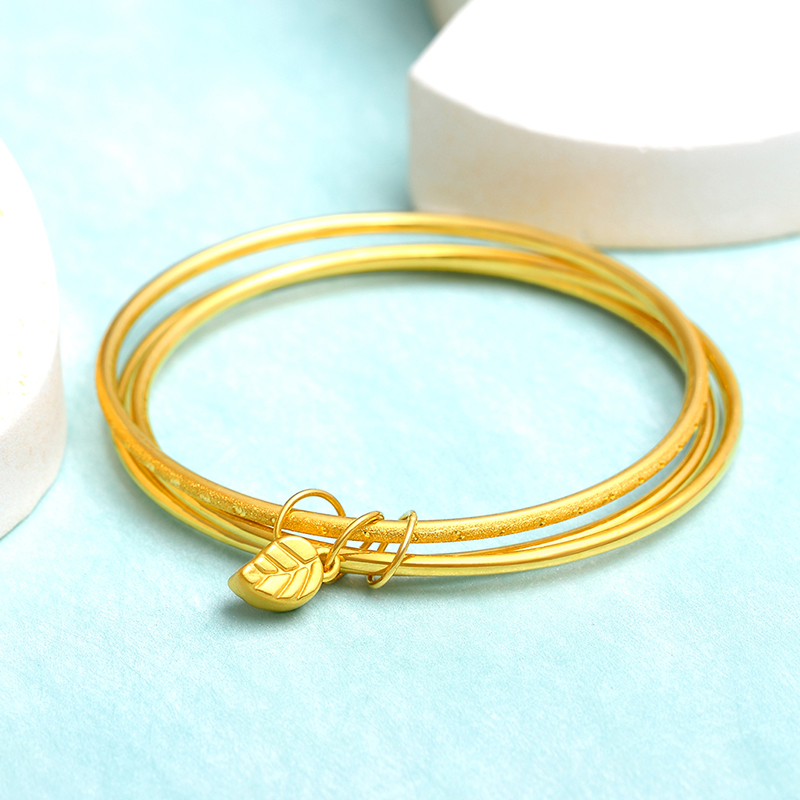 Sansheng III gold bracelet women's gold 999 gold smooth frosted three circle golden bracelet children 3D hard gold ring