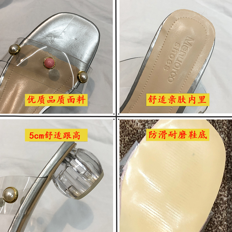 Net red slippers women wear fashion and wild rainbow small fresh thick-heeled medium-heeled slippers women 2021 new summer