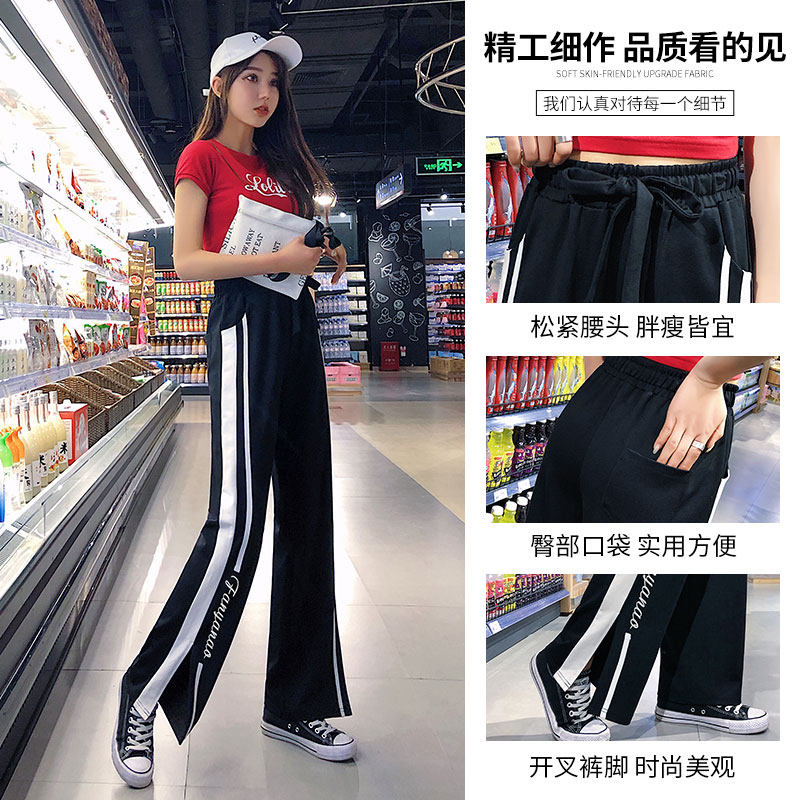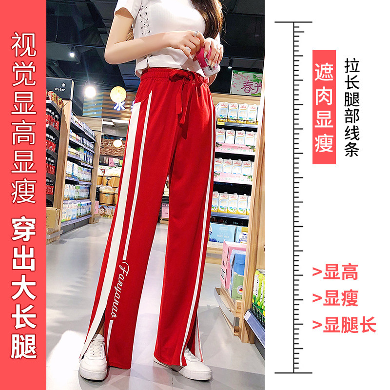 Broadlegged Pants Woman Summer Spring Autumn High Waist Pituitary Sensation Ice Silk Thin Section Casual Loose Straight Cylinder Display Slim 100 Lap Sports Long Pants