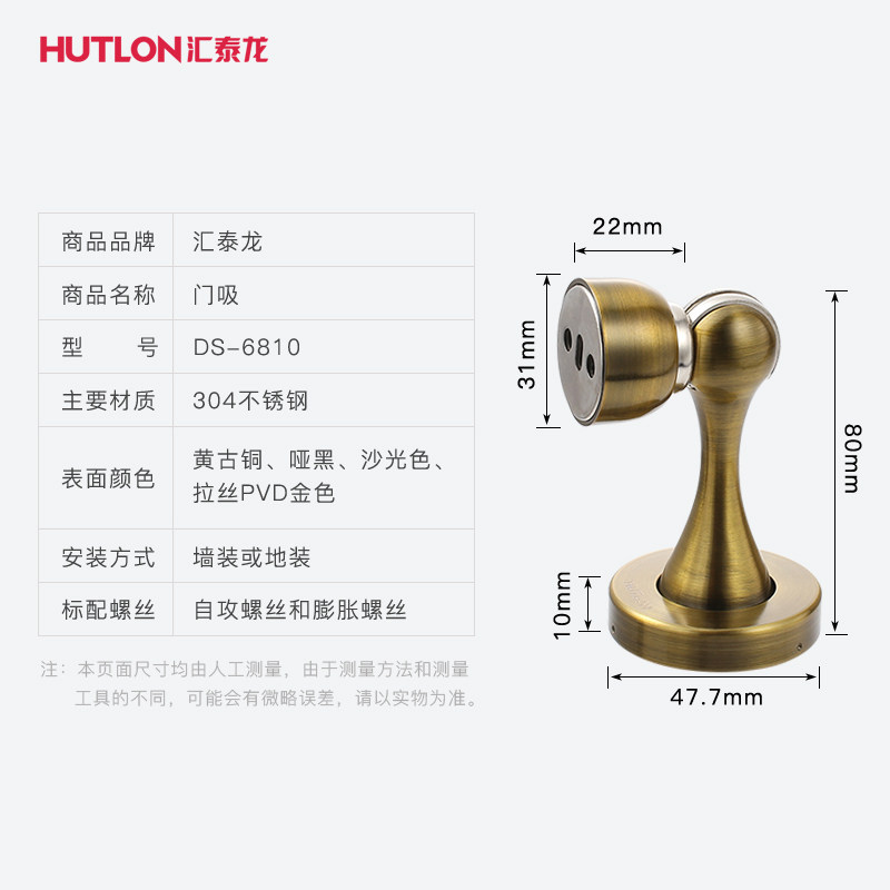 Huitai Gantry Suction 304 stainless steel ground suction door stopper Dressing Room Door Touch Strong Magnetic Door Instrumental Door Top Wall Suction 6810