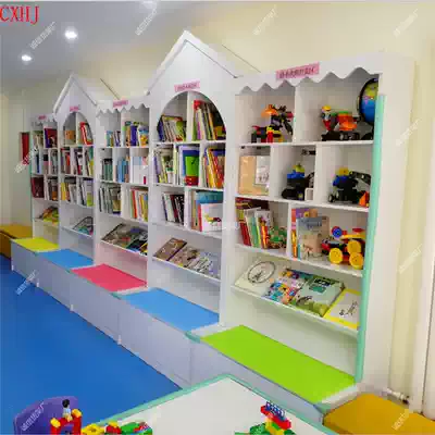 Custom wooden book display cabinet Children's bookcase bookshelf display rack Picture book museum shelf display rack modeling display cabinet