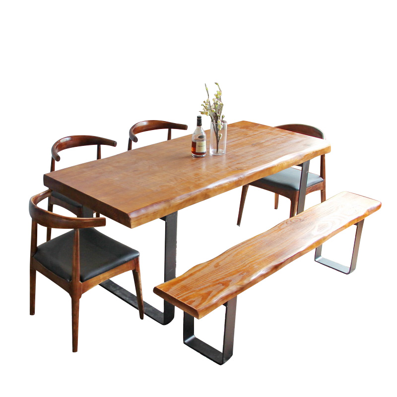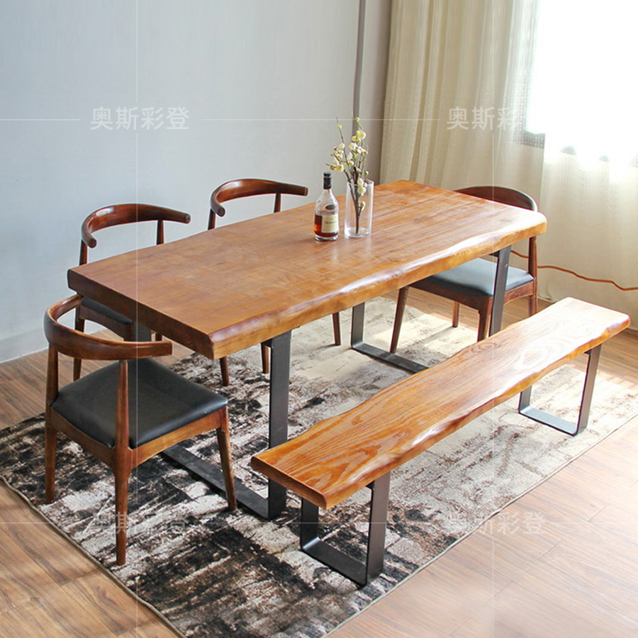 Nordic log large plate dining table and chairs combined living room solid wood strip table tea room tea table rectangular tea tea table