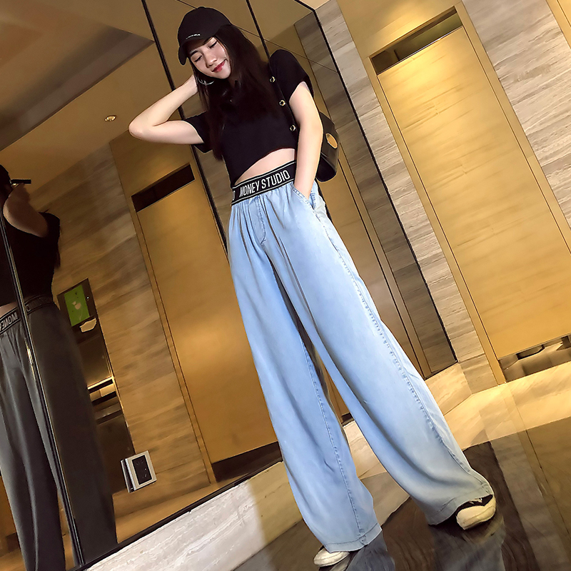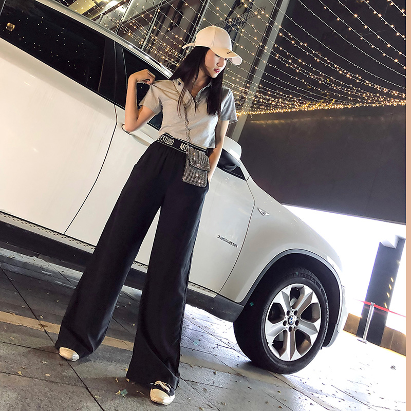 Foreign style fashion suit women's summer pendant wide leg pants high waist straight tube vertical mopping pants net red temperament two-piece set