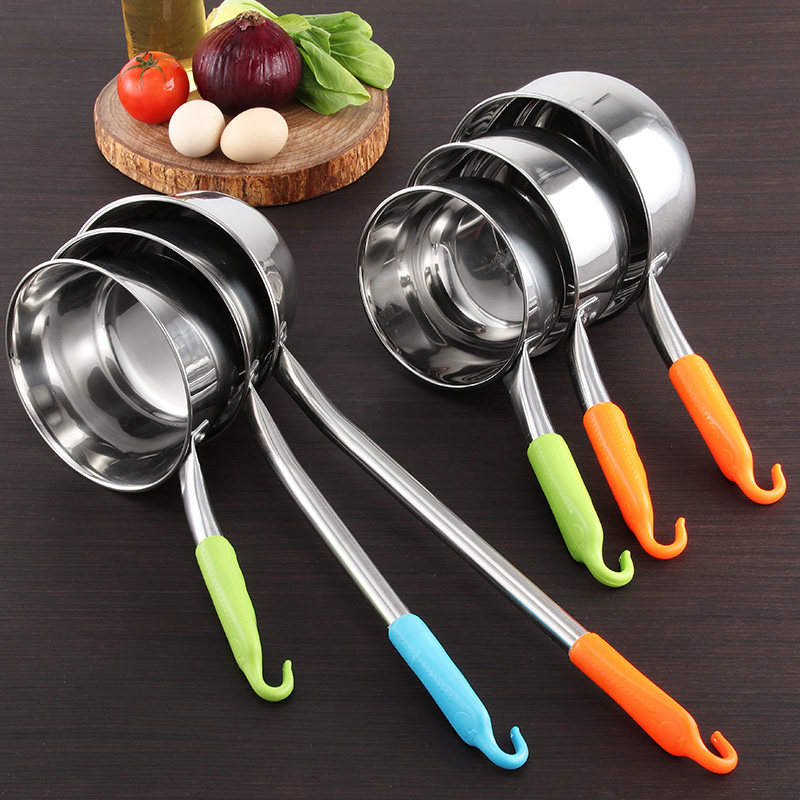 Stainless steel water spoon Kitchen water scoop with hook water scoop Large soup spoon Porridge spoon Commercial long handle water spoon