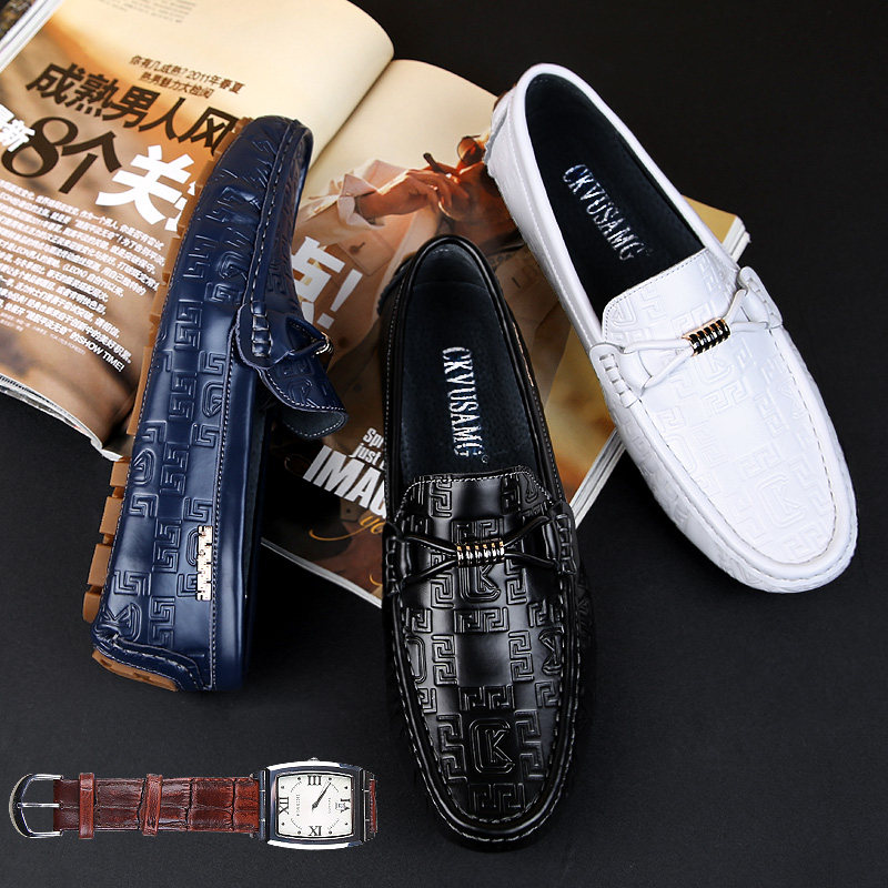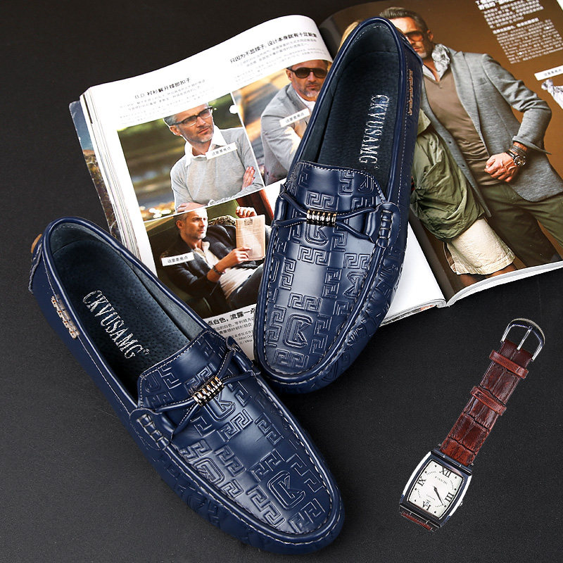 Tide brand beanie shoes men's first layer cowhide four seasons high-quality Korean version of the new style slip-on shoes leather driving shoes