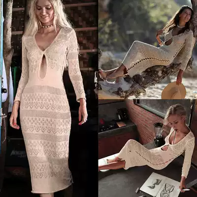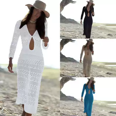 2019 New Sexy Knitted Hollow Skirt Beach Bikini Sunscreen Swimsuit Blouse for One Piece