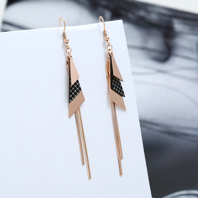 2022 new double-layer diamond-shaped titanium steel tassel earrings women's summer small fresh all-match long net red trendy earrings